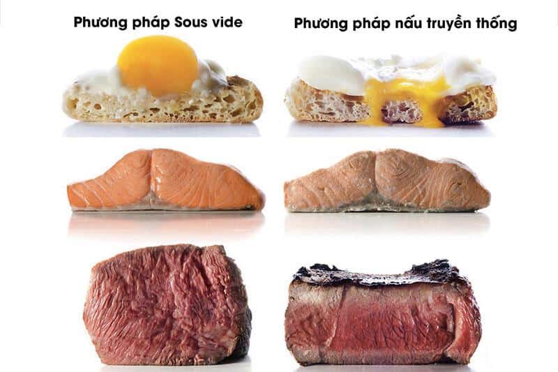 Cũng nhờ phương pháp sous vide, bạn sẽ có được thành phẩm là món ăn chín mềm, ngọt hơn và loại bỏ được quá trình oxy hóa, ngăn ngừa sự phát triển của vi sinh. Có thể nói với cách chế biến này, món ăn sẽ gần như giữ được hương vị nguyên bản.