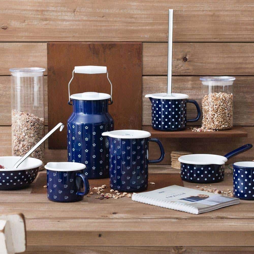 Láy cảm hứng từ những bộ quần áo Dirndl truyền thống của người dân Áo, bộ sưu tập các sản phẩm Country Dirndl khoác lên mình những nét đẹp thôn quê trên tông màu xanh dương lãng mạn. Không chỉ đem lại tính thẩm mỹ cho căn bếp, các sản phẩm của Riess còn được săn đón bởi chất liệu sắt tráng men chống trầy xước với độ bền cao.