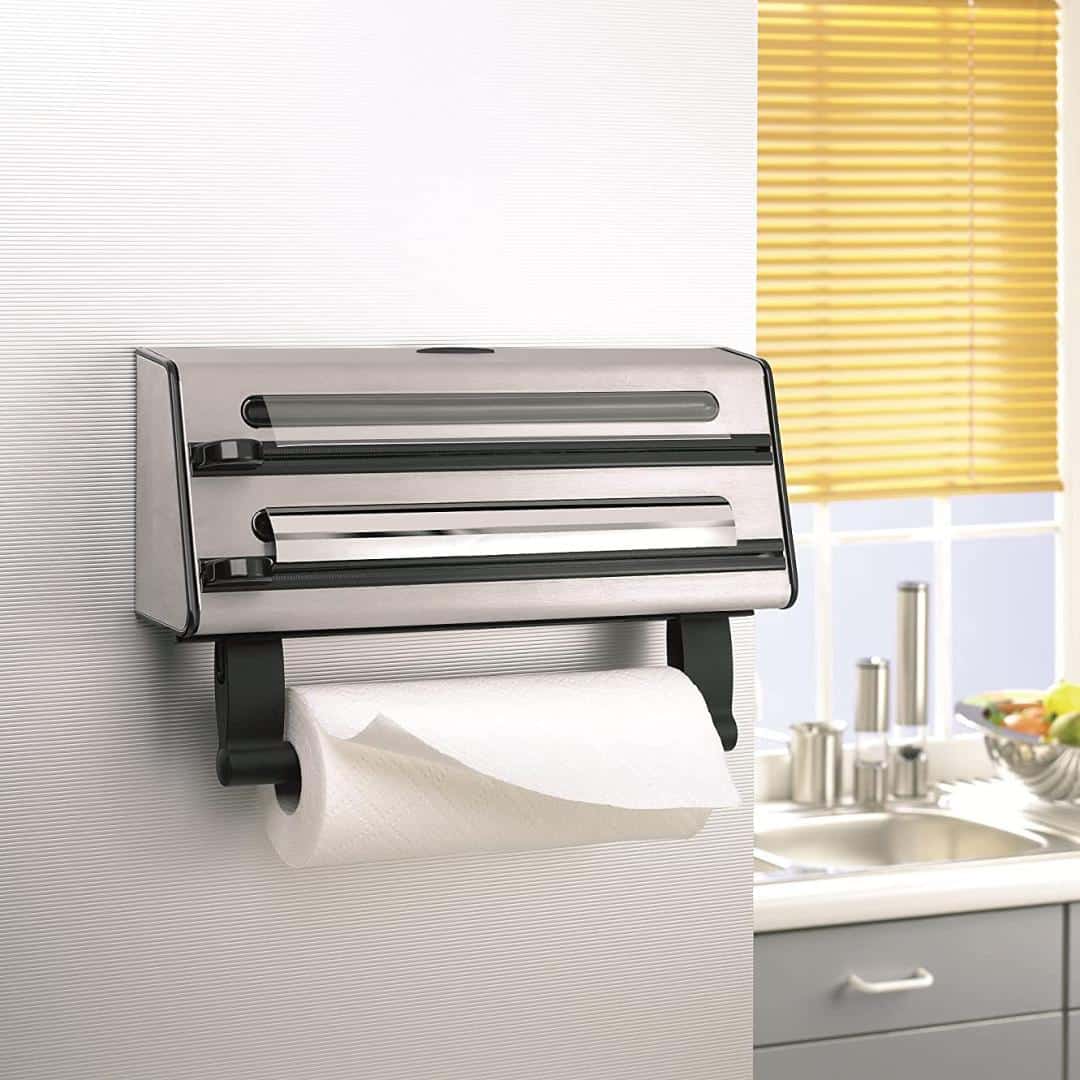 Với Dụng Cụ Cắt Giấy Nhà Bếp Emsa 504180 Contura giờ đây bạn có thể mang một dụng cụ bắt mắt vào gian bếp của mình. Dao cắt với kiểu dáng hiện đại bằng thép không gỉ giúp bạn cắt sạch lớp nhôm và màng bám cũng như tháo cuộn bếp – trợ thủ nhà bếp 3 trong 1 hoàn hảo. Máy cắt phim phù hợp với tất cả các kích thước phổ biến của nhôm và màng bám có chiều rộng 30 cm. Máy cắt cũng có ngăn đựng cuộn giấy có thể tháo rời