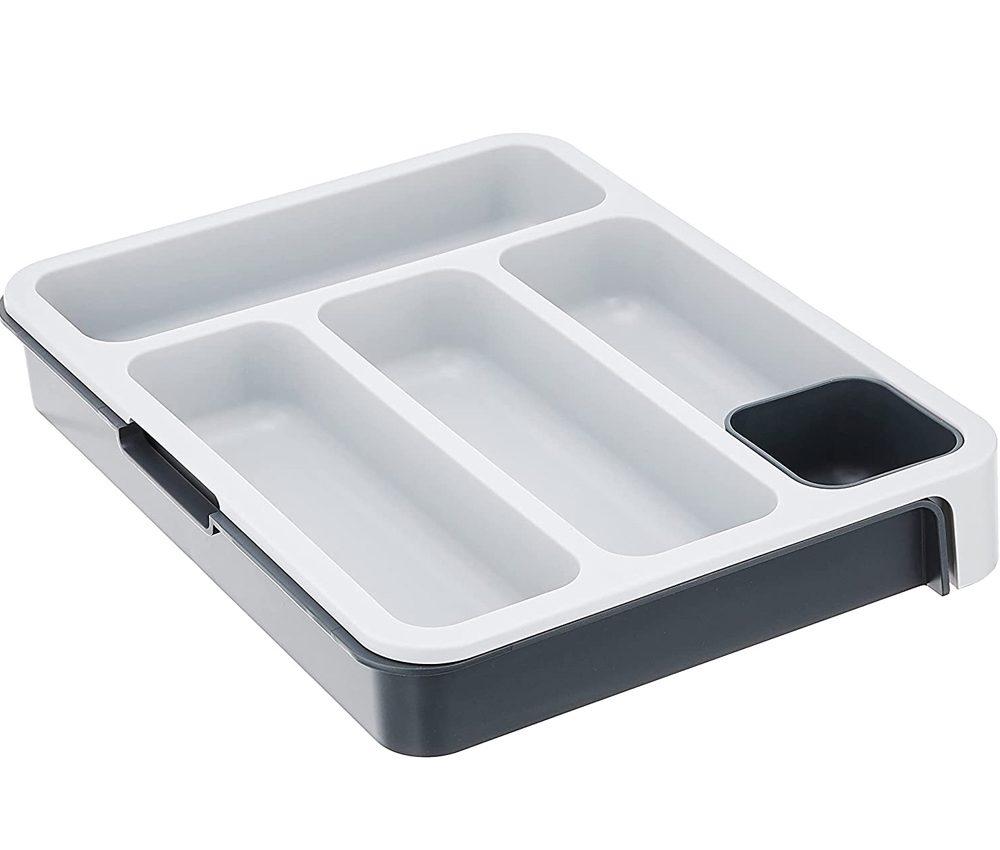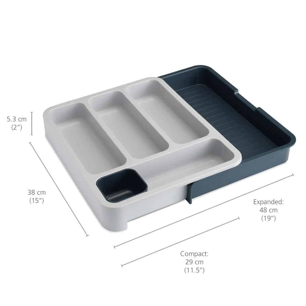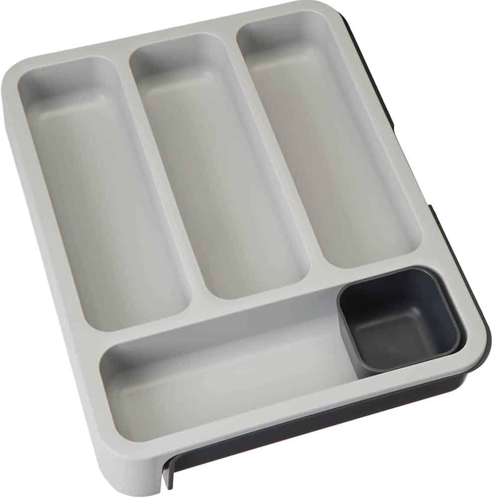 Hãy sắp xếp dao kéo lộn xộn với giải pháp Giá Đựng Thìa Đũa Joseph 85042 thông minh. Hai nửa của giá có thể được điều chỉnh tinh vi phù hợp với nhiều kích thước khác nhau và có thể được khóa chắc chắn lại với nhau tại một vị trí. Thiết kế này cung cấp bốn ngăn sâu bên trong để đựng dao kéo, một khu vực lưu trữ dao hoặc dụng cụ nhà bếp lớn và một khay lưu trữ tiện dụng, có thể di chuyển cho các vật dụng nhỏ, rời. Joseph 85042 phù hợp với nhiều kích thước ngăn kéo từ 29cm đến 48 cm.