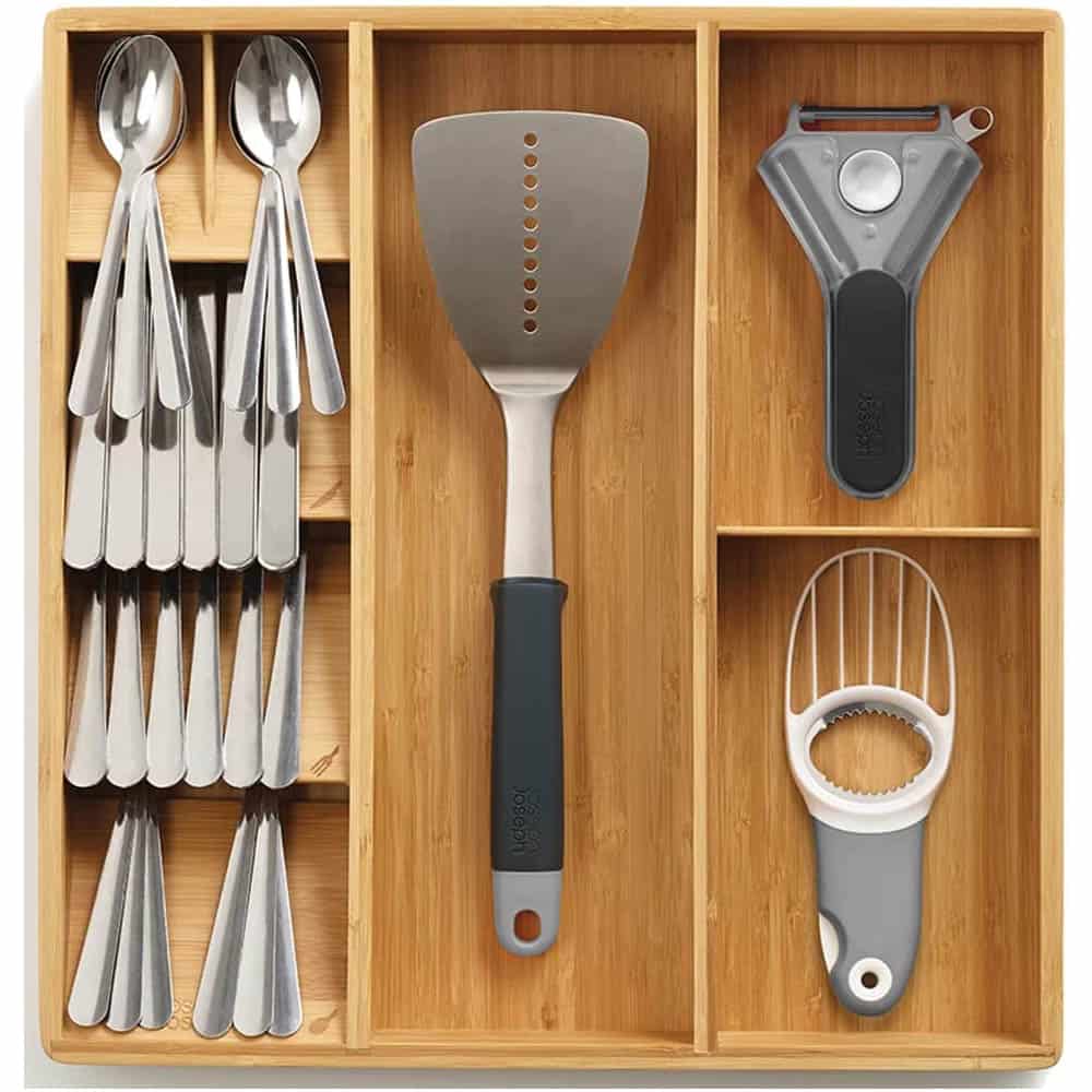 Một giải pháp lưu trữ các loại đồ dùng thìa, dao, dĩa hiệu quả đến từ thương hiệu Joseph Joseph, Khay Đựng Đũa Thìa Joseph Joseph 85170 Tre sẽ là sản phẩm mà Minh House sẽ giới thiệu tới quý khách trong bài viết này. Một sản phẩm đẹp mắt, tạo cảm giác thiên nhiên và đặc biệt giúp không gian bếp luôn ngăn nắp, gọn gàng.