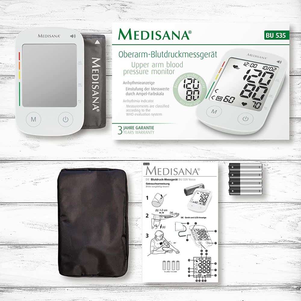 Máy Đo Huyết Áp Medisana BU 535 51178 Voice là một sản phẩm theo dõi sức khỏe ấn tượng. Thiết bị này là một trợ thủ đáng tin cậy để kiểm soát số đo huyết áp thường xuyên tại nhà hoặc khi đang di chuyển. Màn hình hiển thị bao gồm cả tâm thu, tâm trương, mạch, ngày và giờ cũng như hiển thị rối loạn nhịp tim. Với Máy Đo Huyết Áp Medisana BU 535 51178 Voice, bạn có thể chọn lệnh với giọng nói bằng ngôn ngữ nhiều quốc gia như tiếng Đức, tiếng Anh, tiếng Hà Lan, tiếng Pháp, tiếng Ý và tiếng Thổ Nhĩ Kỳ. Các giá trị đo được phân loại theo thang màu theo hệ thống đánh giá của Tổ chức Y tế Thế giới (WHO).