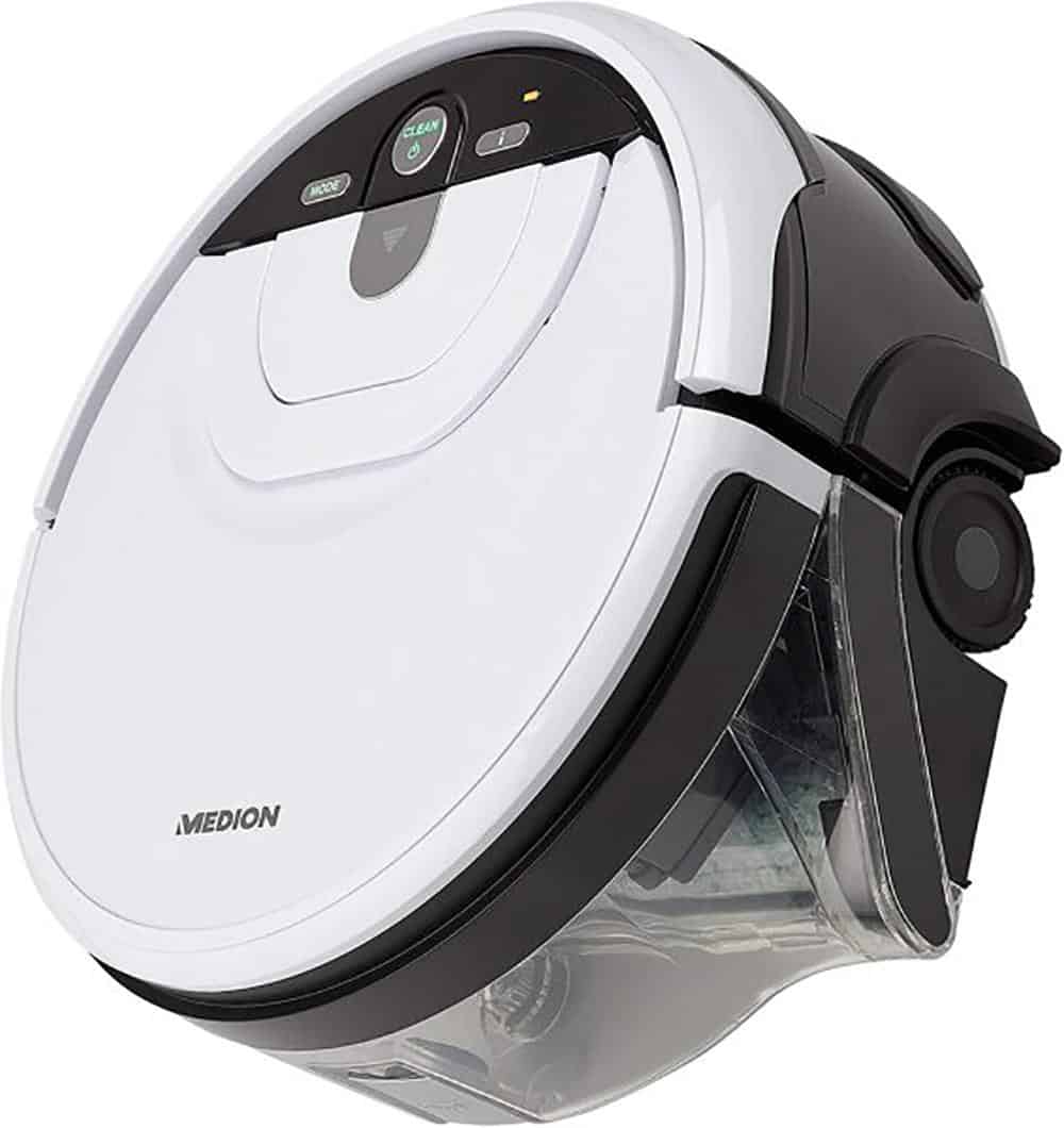 Robot Lau Nhà Medion MD18379 – Màu Trắng có điều hướng thông minh, lau ướt hoàn toàn tự động, bình chứa nước 0,8L và thời gian hoạt động lên đến 80 phút.