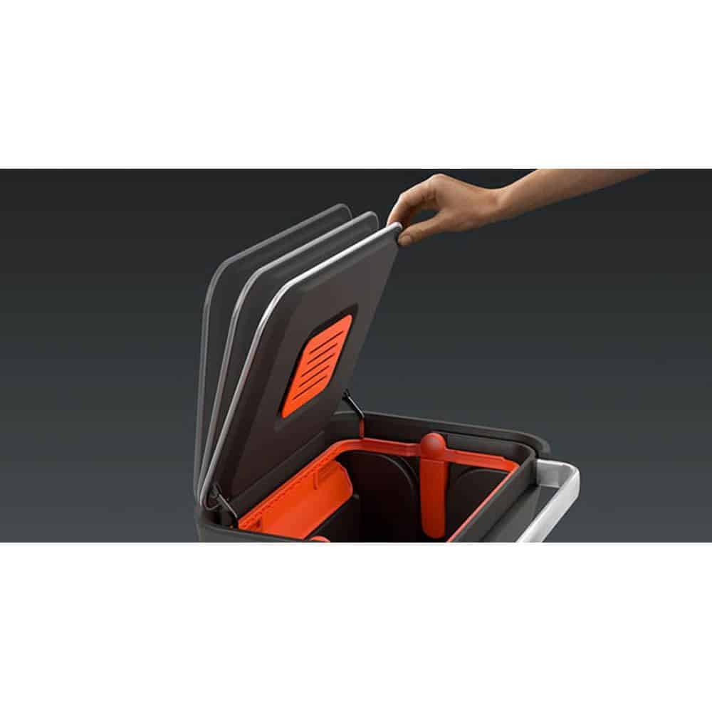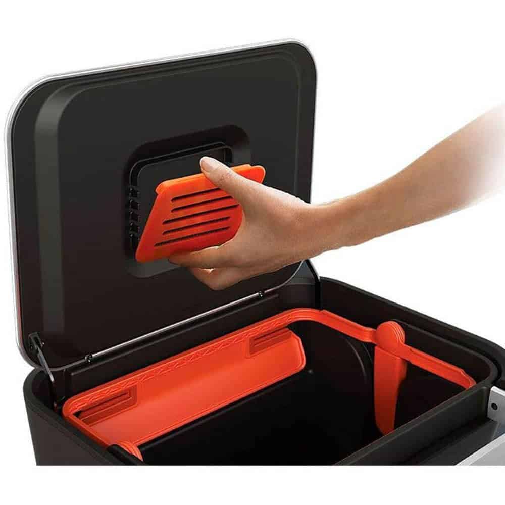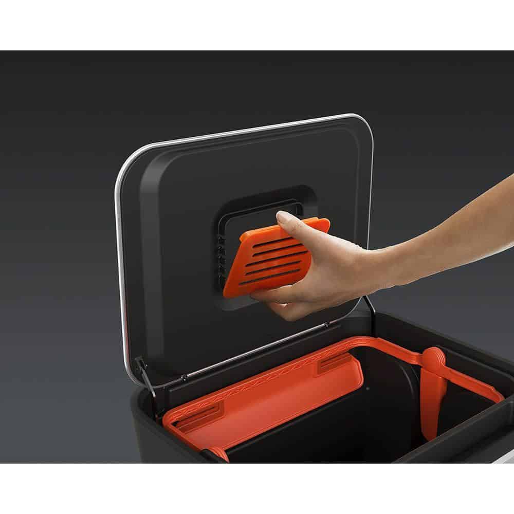 Thùng đựng rác cải tiến này chứa được lượng rác nhiều hơn gấp ba lần so với một thùng rác có kích thước tương tự, có nghĩa là nó không cần phải đổ rác thường xuyên và sử dụng ít lớp lót thùng hơn.