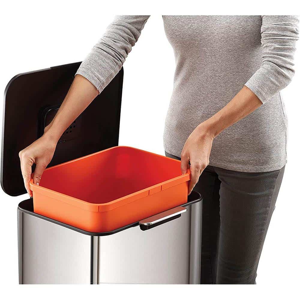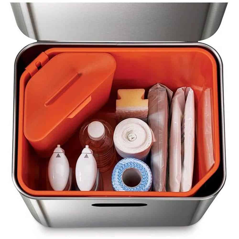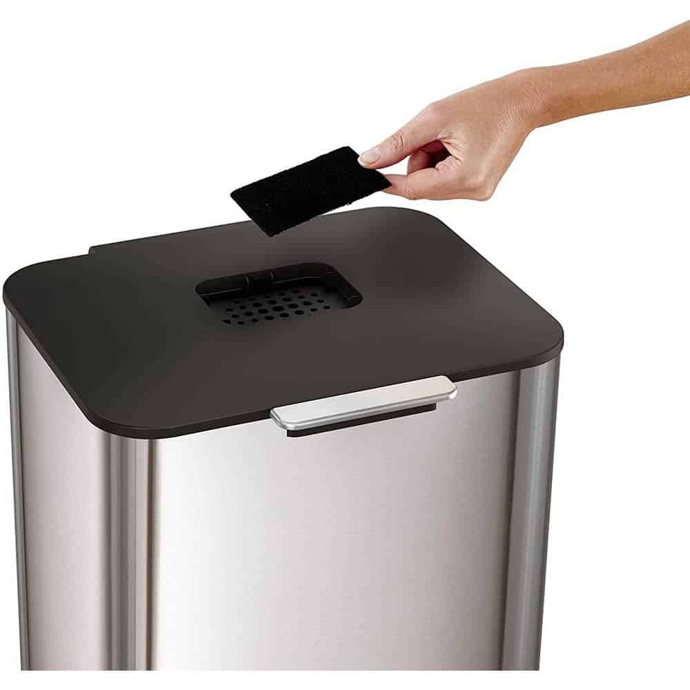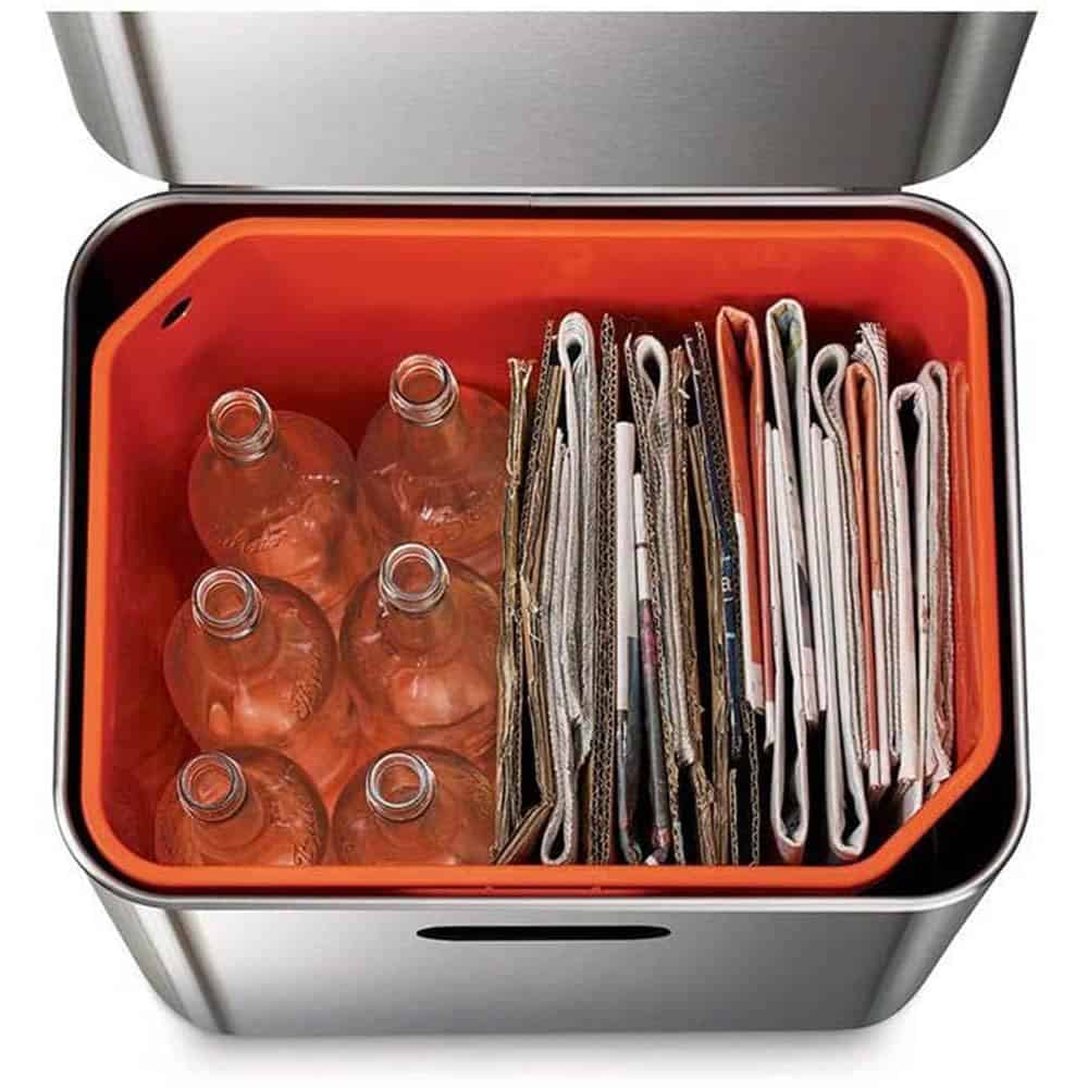 Thùng rác từng đoạt giải thưởng này có các ngăn khác nhau cho rác thải thực phẩm, rác thải thông thường và rác tái chế, do đó bạn có thể dễ dàng tách chúng ra chỉ với một bộ phận nhỏ gọn.
