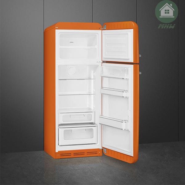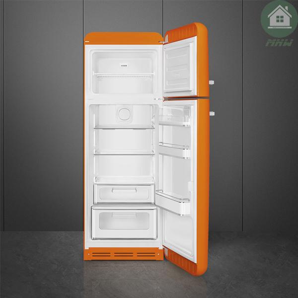 Smeg nổi tiếng với những chiếc tủ lạnh Retro của những năm 50, được thiết kế để tạo thêm nét cá tính và đặc trưng cho căn bếp truyền thống. Nó thậm chí sẽ trông đáng yêu cho những người có một nhà bếp cổ điển hoặc đang thiết kế một nhà bếp shaker. Và tủ lạnh 222l Smeg FAB30ROR3 với lớp vỏ màu cam và thiết kế cổ điển uốn lượn, ngăn đá tủ lạnh trang nhã này của Smeg mang đến nhiều phong cách. Bạn sẽ có thể chứa được nhiều thực phẩm bên trong.