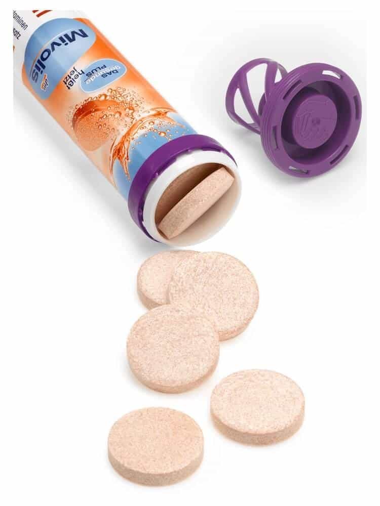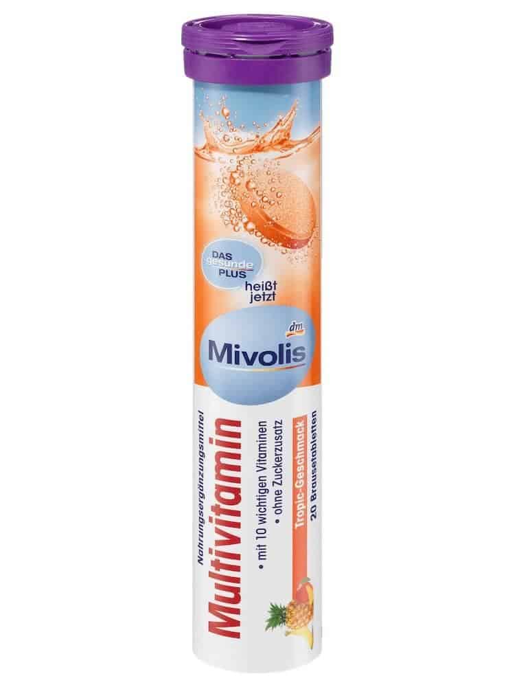 VIÊN SỦI VITAMIN TỔNG HỢP MIVOLIS MULTIVITAMIN BRAUSETABLETTEN giúp bổ sung 10 loại vitamin có lợi cho sức khỏe. Hương vị cam ngon miệng, không cần thêm đường, không chứa Gluten/ Lactose, thuần chay.